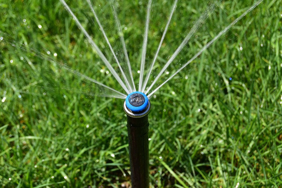 Discover efficient outdoor watering solutions with a cross-section diagram of a French drain system and a sprinkler watering grass with multiple streams of water.